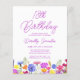 Uma bonito borda de flor silvestre decora o fundo deste convite de aniversário adulto 18. Flores roxas, azuis, amarelas e alaranjadas criam um design colorido e feliz para celebrar esse aniversário marco. A caligrafia roxa moderna e simples acrescenta um toque de tendência para mantê-la fresca. O fluxo de letras aberto e livre de atalhos se coordena perfeitamente com as margaridas e as botas. Este convite de 18 anos vai dar o tom perfeito, quando seus convidados o receberem. Escolha encantadora para primavera ou festa de aniversário de verão. Este elemento faz parte da Coleção de Flores Roxas Bonito. Use-o para criar facilmente a suíte perfeita de convites de 18 anos e o tema da festa.