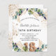 Para uma 18ª festa de aniversário. Um fundo branco decorado com verde de eucalipto e folhas de ouro. Pontos de brilho falsos do ouro. Personalize e adicione seus nomes e detalhes do casamento. Letras pretas e ouros coloridas. O número 18 é escrito com a fonte do estilo do balão. Traseira: fundo branco e pontos brilhantes de falso ouro.