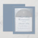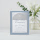 Um primeiro convite à comunhão moderno. Em um fundo retangular azul marinho, ele tem um arco azul-prateado falso que tem um marinho de texto azul sobre fundo branco. A ocasião e o nome são escritos em um roteiro caligráfico elegante; a primeira linha é o texto arquivado.