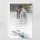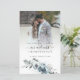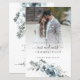 Orçamento Primeiro Natal como Sr. e Sra. Photo Winter Foliage Holiday. Um cartão plano de 5,5 x 8,5" para as suas saudações festivas em um estoque de cartão SEMI GLOSS 110 lb brilhante (semelhante à espessura de um cartão postal). OBSERVE: O envelope fornecido com este cartão é maior que o cartão a 6,75" x 9". Celebre a época especial do seu primeiro Natal casado com seus desejos festivos! Fácil de personalizar o texto e substituir a foto de exemplo por sua. A folhagem de inverno, colorida e gelada, está em cada lado.