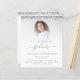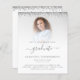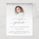 Um valor para o alternativo do ORÇAMENTO em tamanho menor de 4,5 x 5,6" de semirbrilho de 110 lbs, que é de espessura semelhante a um cartão postal (no entanto, não é adequado para uso como cartão postal). POR FAVOR, NOTE que existe UM por folha. Orçamento 2022 Convite de festas de Graduação Foto Silver Glitter. As bordas de cintilação do brilho prateado estão no topo de ambos os lados. Formando está em um roteiro elegante com pântanos. Personalize facilmente o texto de acordo com as suas próprias necessidades e substitua a imagem de exemplo pela sua. Para manter o olhar minimalista contemporâneo dessa design, uma foto com fundo colorido claro funcionará bem.