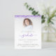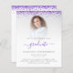 Um valor para o alternativo do ORÇAMENTO em tamanho menor de 4,5 x 5,6" de semirbrilho de 110 lbs, que é de espessura semelhante a um cartão postal (no entanto, não é adequado para uso como cartão postal). POR FAVOR, NOTE que existe UM por folha. Orçamento 2024 Convite de festas de Graduação de Foto Roxo Glitter. As bordas de brilho são as mais altas de ambos os lados. Formando está em um roteiro elegante com pântanos. Personalize facilmente o texto de acordo com as suas próprias necessidades e substitua a imagem de exemplo pela sua. Para manter o olhar minimalista contemporâneo dessa design, uma foto com fundo colorido claro funcionará bem.