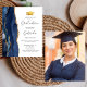 Este convite de festa de formatura de 2024 apresenta uma imagem de aquarela de um geode agado em tons de azul com realces falsos de ouro, juntamente com um boné de formatura de folha de alumínio e uma fita de ouro. A palavra "Graduação" e o primeiro nome do formando aparecem em um roteiro elegante de cinza de carvão em fundo branco, juntamente com os detalhes do partido em fontes sans serif e itálico. Substitua facilmente a imagem de amostra na parte traseira por uma foto vertical do formando.