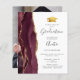 Este convite de festa de formatura de 2024 apresenta uma imagem de aquarela de um geode agado em tons de burgundy com realces falsos de ouro, juntamente com um boné de formatura de folha de alumínio e uma fita de ouro. A palavra "Graduação" e o primeiro nome do formando aparecem em um roteiro elegante de cinza de carvão em fundo branco, juntamente com os detalhes do partido em fontes sans serif e itálico. Substitua facilmente a imagem de amostra na parte traseira por uma foto vertical do formando.