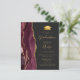 Este convite de festa de formatura de 2024 apresenta uma imagem de aquarela de um geode agado em tons de burgundy com realces falsos de ouro, juntamente com um boné de formatura de folha de alumínio e uma fita de ouro. A palavra "Graduação" e o primeiro nome do formando aparecem num elegante guião de escrita manual dourada sobre fundo preto, juntamente com os detalhes do partido em fontes sans serif e itálico. Substitua facilmente a imagem de amostra na parte traseira por uma foto vertical do formando.