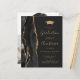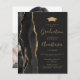 Este convite de festa de formatura da tendência 2025 apresenta uma imagem de aquarela do geode de agata preto com realces de brilho dourado falsos. A palavra "Graduação" e o primeiro nome do formando aparecem num elegante guião dourado sobre fundo preto, juntamente com um boné de conselho de argamassa de cor dourada e detalhes da festa em fontes sans serif e itálico. Substitua facilmente a imagem de amostra na parte traseira por uma foto vertical do formando.