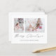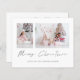 Orçamento 2026 Calendário 2 Foto Feliz Natal. Um preço orçamentário menor 4,5 x 5,6 "alternativo em 110 lb, semelhante em espessura a um cartão postal. Há um por folha. Basta substituir as duas fotos de exemplo por suas próprias e personalizar com suas saudações e nomes na parte inferior. Feliz Natal está em um roteiro de na moda. Um calendário de 2025 está no verso.