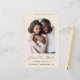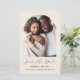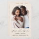 Este simples e minimalista Cartão Salvar a Data apresenta um arco de fotos acima das palavras "Salvar a Data" no elegante roteiro preto de manuscrito, seguido pelos nomes do casal, data do casamento e cidade em sans serif em um fundo bege. Adicione uma segunda foto horizontal ao verso, juntamente com uma mensagem mais detalhada com informações adicionais.