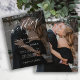 Convite para casamento de fotos do Elegante Trendy BUDGET com "o casamento de" texto branco e sobreposição preta com um roteiro de caligrafia. Personalize-o com suas 2 fotos e texto. +++++++++ Este convite de casamento é adequado para cerimônias e recepções formais de casamento no estilo moderno. +++++++++++++++++++++++++++ LEIA ISTO ANTES DE COMPRAR! Este é um cartão de casamento de barato orçamentário impresso em uma folha de papel (cada folha tem um cartão). +++ Para obter a melhor qualidade de preço, nosso conselho é escolher o tipo de papel Semi-Gloss (é espesso o suficiente para ser usado para papelaria) +++ Se você precisar de envelopes, escolha a OPÇÃO ENVELOPE. ++ Verifique duas vezes todas as informações e a ortografia do seu texto porque você receberá exatamente o que você vê - ninguém mais verificará nada antes de imprimir. +++ Esta placa foi projetada para o tamanho de 4,5" x 5,6". Caso você escolha outro tamanho do cartão e o texto saia da página, tudo precisa ser corrigido antes de adicionar o produto ao carrinho. Peça ajuda ao Serviço de Design ao Vivo.