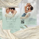 Uma alternativa de orçamento com bom custo-benefício em um tamanho menor 4,5 x 5,6” semi-brilho 110lbs de peso, que é de espessura semelhante a um cartão postal (no entanto, não é adequado para uso como cartão postal). POR FAVOR, OBSERVE que há UM convite por folha. Orçamento 2 Fotos Sobreposição Rótulo Código QR Casamento Verde Sage Adicione seu código QR ao site do seu casamento no verso para que seus convidados possam responder e ver todos os detalhes online sem a necessidade de envelopes separados. Uma tipografia informal para o título principal O Casamento de complementa o restante do texto que você pode personalizar facilmente. Substitua as fotos de amostra pelas suas favoritas.