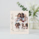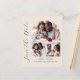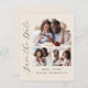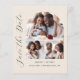 Esta simples e minimalista placa Save the Date apresenta um arco de colagem de fotos, com uma foto horizontal no topo e duas fotos quadradas abaixo. As palavras "Salvar a Data" são executadas verticalmente para cima da margem esquerda no elegante script preto de escrita manual. Os nomes dos casais, a data do casamento e a cidade aparecem abaixo da colagem de fotos em sans serif num fundo bege. Adicione uma mensagem mais detalhada com informações adicionais na parte traseira, juntamente com um código QR para ajudar seus convidados a visitar o site do seu casamento.