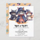 Truque Bonito ou Convite para Tratar para toda a família que apresenta as 3 bruxas de gatos mais bonitas com a sua ilustração de chapéus e capas. Você pode personalizar este Convite com seus detalhes.