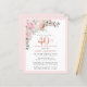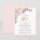 Molho cor-de-rosa pincelado com uma elegante disposição floral rosa rosa rosa rosa no canto superior esquerdo. O 40º está escrito em uma bela textura de ouro rosa. design bonito e feminina.