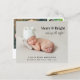 Fácil orçamento, 4 fotos de Natal, anúncio de natalidade. A fotografia do seu recém-nascido preenche a frente do cartão com "Feliz e Brilho e para cima a noite toda!" escrito em uma mistura de tipografia elegante e um roteiro para o na moda (este texto pode ser movido na ferramenta design para se adequar à sua fotografia). Adicione o nome do seu bebê e as estatísticas de natalidade. No verso, adicione 3 fotos adicionais, um cartões de natal e seus nomes familiares.