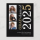 Um valor para o alternativo do ORÇAMENTO em tamanho menor de 4,5 x 5,6" de semirbrilho de 110 lbs, que é de espessura semelhante a um cartão postal (no entanto, não é adequado para uso como cartão postal). POR FAVOR, NOTE que existe UM por folha. Lançamento de Graduação Dourado 2025 no Orçamento 4. Uma tipografia na moda minimalista e multidesign de fotos para anunciar a notícia do seu formando, com na moda grande tipografia rotacionada e à direita em branco e ouro num fundo preto clássico. Personalize facilmente o resto do texto, incluindo a sua mensagem no verso. Substitua as fotos nas modelos por suas.
