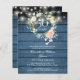 Apresentando uma delicada camada de rosas florais de aquarela e luzes bonito de cordas em um fundo de painéis de madeira azul, este convite de 50 anos de casamento da rústica chic pode ser personalizado com suas informações especiais de aniversário. O inverso apresenta uma árvore floral correspondente que enquadra suas datas de aniversário em texto elegante em um fundo de painéis de madeira. Projetado por Thisnotme©