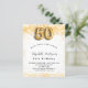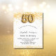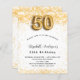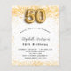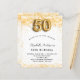 Para uma elegante 50ª festa de aniversário. Um fundo branco chic. Decorado com brilho de ouro falso, brilhos. Personalize e adicione um nome, idade e detalhes da festa. O nome é escrito com um script de estilo manuscrito. Número 50 com letra de estilo de balão.