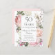 Os detalhes da celebração são cercados por um quadro floral chico que é decorado com rosas rosas e folhas verdes de sábio. Enquanto é um design tradicional, a folhagem botânica aberta e arejada e o texto lhe dão uma vibração contemporânea. O convite de volta é um rosa suave.