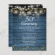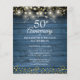 Apresentando luzes de cordas e corações delicados de ouro adoram confetti em um fundo de madeira rústica. Personalize com suas informações especiais de aniversário de 50 anos em ouro em carta chic. Projetado por Thisnotme©