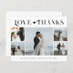 Moderna e simples tipografia de tendências minimalista barato do orçamento do casamento cinco fotos do casal nome da colagem e texto da mensagem personalizado amor e obrigados obrigado seu cartão de coração modelo. Fácil de personalizar em ambos os lados com seu texto e imagens.