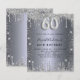 Um convite moderno, na moda e glamouroso para uma 60ª festa de aniversário. Um fundo com aparência de prata falsa, decorado com poeira brilhante. Personalize e adicione seu nome e detalhes da festa. O número 60 é escrito com uma fonte de estilo de balão, script.