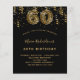 Um convite moderno, na moda e glamouroso para uma 60ª festa de aniversário. Um fundo preto, decorado com confete. O nome é escrito com um moderno estilo escrito à mão. Personalize e adicione os detalhes da sua festa. O número 60 é escrito com uma fonte do estilo do balão, padrão leopardo.