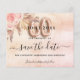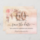 Uma moda e moda Salve a data para uma 60ª festa de aniversário. Um fundo cor-de-rosa pincelado, rosa de gradiente dourado decorado com florais cor-de-rosa pincelado e grama pampas. Personalize e adicione uma data e nome/idade. O texto: Salvar a Data é gravado com um script de estilo com letra de tendência grande. O número 60 é escrito com um script de estilo de balão.