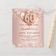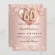 Para um elegante aniversário de 60 anos. Um fundo de aparência metálica falsa rosa dourado. Decorado com ouro rosa, falso cor-de-rosa, faíscas e balões. Personalize e adicione um nome e detalhes da festa. O nome é escrito com um script de estilo manuscrito, número 60 com fontes de estilo de balão.