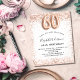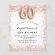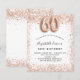 Para um elegante aniversário de 60 anos. Um fundo branco. Decorado com rosa dourado, cintilação falsa rosa, faíscas. Personalize e adicione um nome e detalhes da festa. O nome é escrito com um script de estilo manuscrito, número 60 com fontes de estilo de balão.