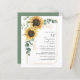 Eucalyptus Sunflower Script 75th Aniversário Convite para 75º Aniversário que você pode personalizar facilmente com os detalhes do seu partido clicando no botão "Personalizar". Apresentando um brilho amarelo floral e verde suculente com uma estrutura geométrica de folha de ouro e tipografia moderna