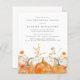 As abóboras de queda estão aninhadas em delicadas flores silvestres amarelas do ouro e laranja para criar uma estética elegante. Todo o texto é editável para que você possa facilmente artesanato seu próprio humor especial.