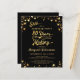 Convide os convidados para uma Festa Surpresa de Aniversário COM 80 ANOS EM FASE DE PLANEJAMENTO com este convite econômico impresso em papel leve de 4,5x5,6" em vez de cartão, apresentando um design de tipografia de caligrafia retrô que incorpora a idade e o ano de nascimento dentro do design em texto dourado com estrelas douradas em um fundo de cor editável (mostrado em preto). Este tipo de cartão é ideal para entrega manual e/ou para orçamentos conservadores (envelopes vendidos separadamente na página de pedidos). ASSISTÊNCIA: Para obter ajuda com modificação ou personalização do design, alteração de cor, conversão para um arquivo de download digital instantâneo, transferência do design para outro produto ou se você gostaria de itens coordenados, entre em contato com o designer ANTES DE FAZER O PEDIDO através da guia de MENSAGEM do Z