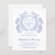 Uma elegante crista floral azul-vintage francesa toma palco central neste convite de aniversário de eterno. Ornamentado, formal e muito feminina fará qualquer dama de aniversário se sentir muito especial. Os suprimentos da parte coordenadora estão disponíveis.
