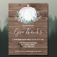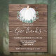 Convide a família e os amigos para a sua celebração especial com este convite de Ação de Graças do orçamento rústico. É decorada com uma abóbora branca de cor aquosa e folhagem de eucalipto em tons macios de verde sobre um fundo de madeira de celeiro. Personalize-o com seu nome e detalhes. Original Watercolor © Michele Davies.
