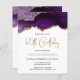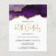 Este convite de 60 anos de tendência apresenta uma imagem de aquarela de um geode agado em tons de roxo com realces de ouro falsos. As palavras "60º Aniversário" aparecem na falsa brilha dourada em letra decorativa moderna de escrita manual. Personalize-o com o nome do honroso em texto dourado e os detalhes em preto em fundo branco. A mesma imagem de agata roxa aparece no lado oposto.