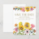 Celebre seu próximo casamento com este charmoso e barato cartão "Salve a Data", com flores vibrantes de aquarela em amarelos quentes e pintas moles. Ideal para casais que procuram criar um anúncio elegante sobre um orçamento, este cartão é impresso em um documento de orçamento que oferece uma bela aparência sem comprometer o estilo. O design floral e o texto dourado evocam um senso de romance e alegria, perfeito para dar o tom ao seu dia especial. Ideal para o tema de um jardim ou casamento ao ar livre, este cartão garante que seus hóspedes marquem seus calendários com estilo!