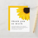 Girassol Amarelo Novamente Obrigado. Um alternativo MENOR de 4,5" x 5,6", compatível com o orçamento. Disponível em um STOCK de PLACA SEMI GLOSS 110 lb ou um STOCK de PAPEL THINNER SATIN FINISH 80 lb. Os envelopes são um extra opcional. Estilo informal. Um girassol gigante fica no topo à direita e o cabeçalho é grande abaixo em na moda com minúsculas, com os detalhes no fundo. Personalize facilmente o texto para seus próprios detalhes.
