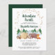 O convite à nascente rusticidade, de fácil pagamento, com ilustrações bonitinhas de animais da floresta, com a tenda acampada nas montanhas e na floresta, uma camada de estrelas de ouro e "Aguardas de Aventura" e o nome da futura mãe num roteiro verde de caçador negro. Personalize facilmente os detalhes do chá de aspersão para bebês.