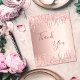 Um cartões de agradecimentos para um aniversário de 50 anos (ou qualquer idade). Uma cor rosa dourada, cor-de-rosa e metálica de aparência falsa. Com pingos cintilantes brilhantes. Na frente, um grande e escuro, rosa dourado, escrita à mão, colorida, e o texto: Obrigado. Voltar: Personalize e adicione seu nome e nota de agradecimento. O nome é escrito com um moderno estilo escrito à mão.