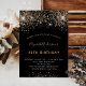 Um convite moderno, na moda e glamouroso para uma festa de aniversário 40ª (ou qualquer idade). Um fundo preto decorado com brilho falso e brilho. O nome é escrito com um moderno ouro escrito com letras no estilo à mão. Personalize e adicione os detalhes da sua festa.