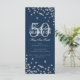 Design de "Programa de Festa de aniversário" elegante com Confetti Glitter em Prata e Marinho com texto personalizado.