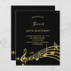 Um cartão de convite de aniversário moderno e moderno (ou qualquer idade) para homens e mulheres. Um clássico fundo preto e notas de música, letras coloridas de ouro. Personalize e adicione as informações de sua parte. Anterior: as notas de música douradas a preto falham.