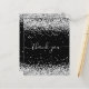 Um cartões de agradecimentos de aniversário feminino e elegante. Uma cor preta de fundo. Com pó de cinza. Na frente, o texto escrito em grande mão e o texto: Obrigado. Voltar: Personalize e adicione seu nome e nota de agradecimento. O nome é escrito com um moderno estilo escrito à mão com traços. Para manter as hastes, exclua apenas o nome da amostra, deixe os espaços ou emoji na frente e depois do nome.