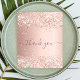 Um cartões de agradecimentos de aniversário feminino e elegante. Uma cor rosa dourada, cor-de-rosa e metálica de aparência falsa. Com poeira falsa. Na frente, um grande e escuro, rosa dourado, escrita à mão, colorida, e o texto: Obrigado. Voltar: Personalize e adicione seu nome e nota de agradecimento. O nome é escrito com um moderno estilo escrito à mão com traços. Para manter as hastes, exclua apenas o nome da amostra, deixe os espaços ou emoji na frente e depois do nome.