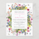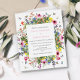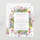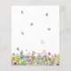 Boêmio, moderno e perfeito para um casamento de verão, este convite de casamento econômico em uma folha de papel apresenta flores silvestres delicadas coloridas com borboletas, abelhas e joaninhas.