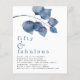 Azul Deixa 50º Convite de aniversário. Um alternativo MENOR de 4,5" x 5,6", compatível com o orçamento. Disponível em um STOCK de PLACA SEMI GLOSS 110 lb ou um STOCK de PAPEL THINNER SATIN FINISH 80 lb. Os envelopes são um extra opcional. Estilo informal. Folhas azuis de cor grande moderna decoram a parte superior e o cabeçalho é grande abaixo em na moda com os detalhes na parte inferior. Personalize facilmente o texto para seus próprios detalhes.