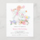 Um alternativo do preço do orçamento. Os envelopes são um extra opcional. Estilo Whimsical para convidar os amigos de sua filha para sua festa de 4 anos, com esta graciosa dançarina de balé loira e pássaro, borboleta, balões e flores rosa e lilases. Fácil de personalizar os detalhes de acordo com as suas necessidades. Você também pode alterar as cores do texto e a cor de fundo cor-de-rosa no verso, se desejar através da opção Personalizar mais.