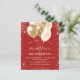 Para uma elegante Quinceañera, 15 festa de aniversário. Um fundo vermelho da moda. Decorado com brilho dourado, faíscas e balões. Personalize e adicione um nome, idade e detalhes da festa. O nome é escrito com um script de estilo manuscrito