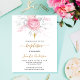 Para um batismo elegante, comemorando uma menina. Um fundo branco chic. Decorados com flores, rosas, cor-de-rosa e branco, e uma cruz de ouro falsa. Personalize e adicione o nome da criança e os detalhes. Letras pretas e ouros.