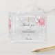 Um cartões de agradecimentos simples e elegante com foto. Um fundo metálico prateado falsa, uma estrutura branca, poeira brilhante falsa, rosas rosa, florais. Uma cruz ouro. Personalize e adicione uma nota de agradecimento, foto das meninas e nome. Texto preto.